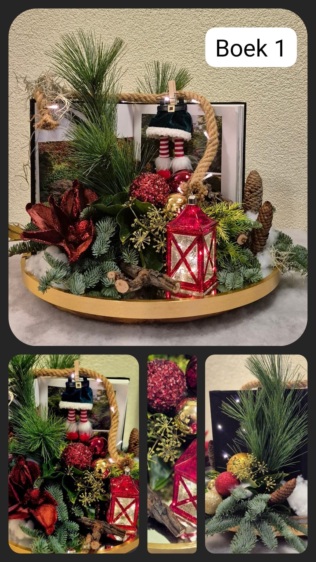 -Kerstboek nr:1 of nr:2 , op ronde spiegel gemaakt doorsnede 50 cm of op een gouden dienblad!